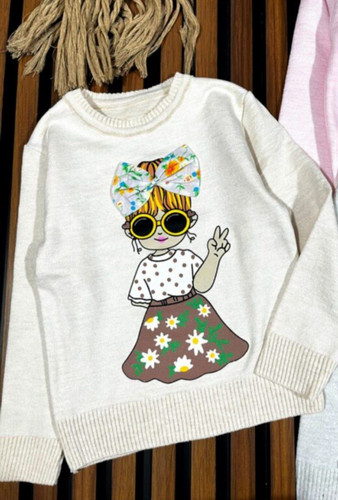 بافت گرم دخترانه گپ بچگانه طرح خانم عینکی پاپیون برجسته