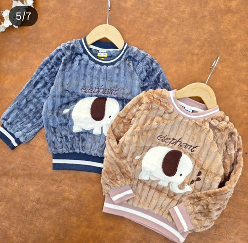 بلوز بچگانه بسیار گرم طرح فیل جنس ریلی دو رو گرم سایز۳۵/۴۰