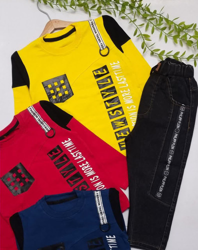 ست بلوزوشلوار پسرانه بلوز دورس شلوار لی سایز ۴۰/۴۵/۵۰