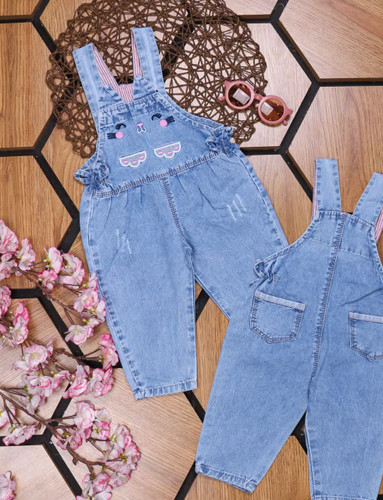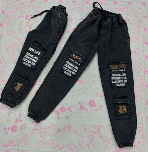 شلوار لی دخترانه طرح دوگل برجسته سنگشور شده رنگ ثابت