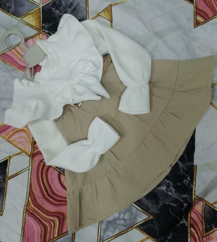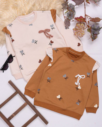 بلوزدخترانه بچگانه طرح قلب و پاپیون جنس اسپان دورس کرمی و شکلاتی