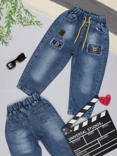 شلوار لی مام پسرانه کمرکشی تدی گلدوزی شده