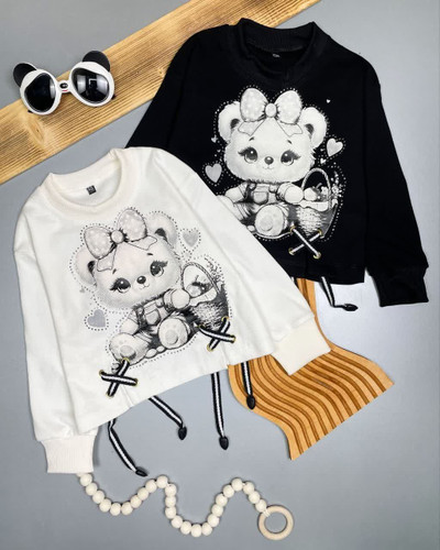 کراپ دخترانه پنبه طرح خرس نگین دار