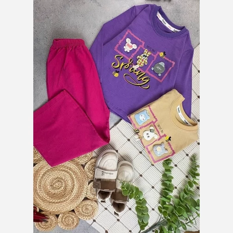 ست بلوز و شلوار دخترانه بچگانه جنس پنبه توکرکی سایز ۳۵/۴۰