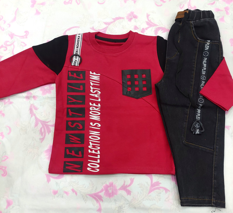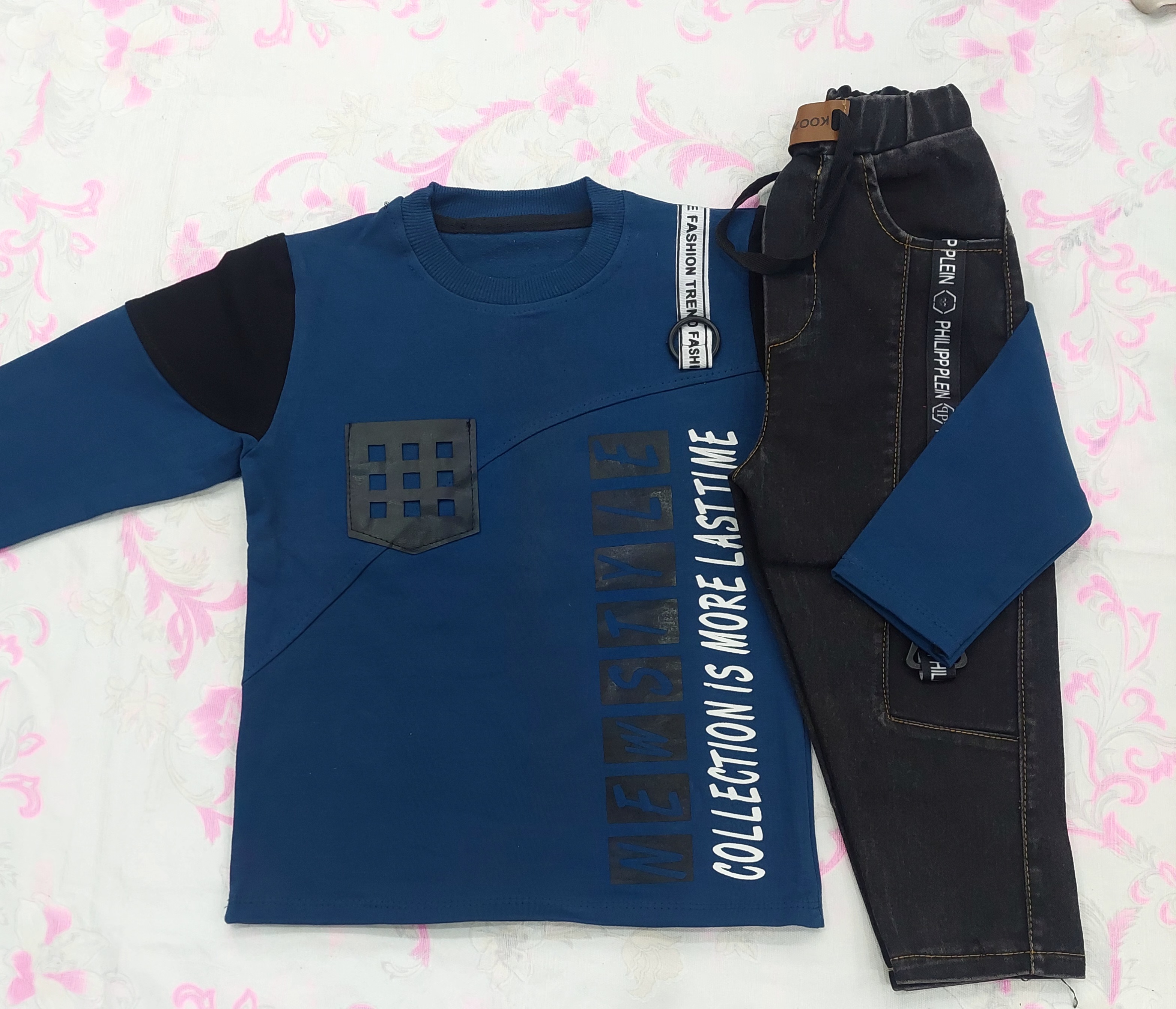 ست بلوزوشلوار پسرانه بلوز دورس شلوار لی سایز ۴۰/۴۵/۵۰